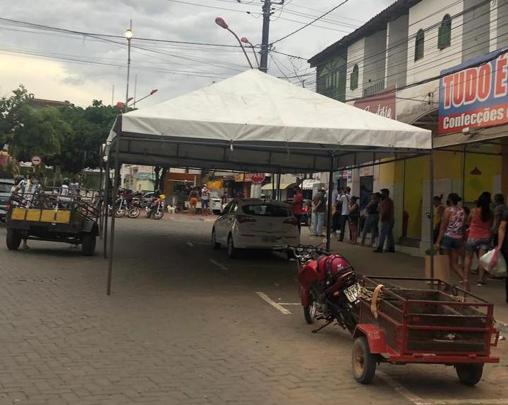 Quando instaladas, as tendas ficavam diuturnamente instaladas em frente à agência da Caixa e das duas lotéricas (Boa Sorte e Da Praça) e serviam de abrigo para as pessoas se manterem com o distanciamento social e proteção contra a chuva e o forte calor.