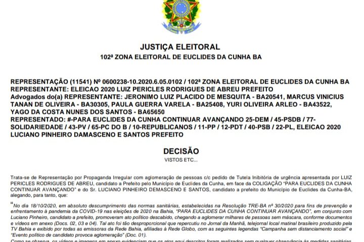 Ver mais Luciano Pinheiro é reeleito prefeito de Euclides da CunhaCompra de votos e propaganda ilegal são registrados no interior