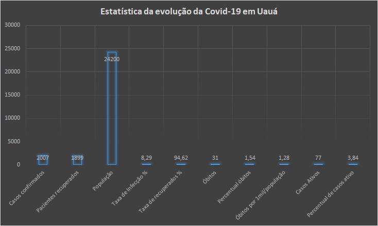 Município de Uauá, Bahia, que tem apenas 24.220 habitantes – segundo dados do Instituto Brasileiro de Geografia e Estatística (IBGE) -, é um dos mais afetados pela pandemia do novo coronavírus (Covid-19) na região. Desde o início da pandemia os números absolutos ou relativos são fatores negativos no enfrentamento da pandemia.