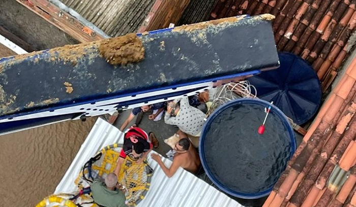 Com as casas invadidas pela água das fortes chuvas e inundações causadas pela alta do rio Jiquiriça, 16 moradores de Ubaíra foram resgatados por equipes do Grupamento Aéreo da Polícia Militar da Bahia, no domingo (26). As vítimas foram retiradas, na maior parte das vezes, pelo telhado das casas, com a utilização de uma espécie de cesto acoplado à aeronave, devido a impossibilidade de entrada nos imóveis. Imagens registradas por moradores da cidade mostram momentos da ação de resgate.