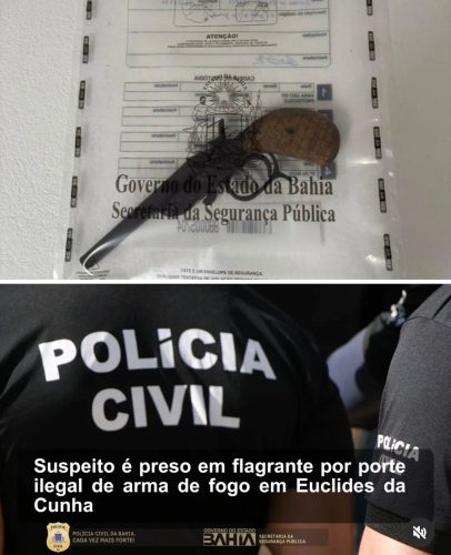 Na tarde desta segunda-feira (1º), um homem de 35 anos foi preso em flagrante por porte ilegal de arma de fogo em Euclides da Cunha, após uma ação rápida da Polícia Civil através de denúncias anônimas feitas ao Disque-Denúncia 181.